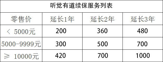 所以,根據(jù)用戶朋友的需求,聽覺有道提供付費延長保修期的服務。