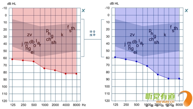 <span style="font-size:16px;"><img src="/upfiles/2018042602253928.png" alt="" /><br /></span></p><p style="text-align: center;"><span style="font-size:16px;"><br /></span></p><p><span style="font-size:16px;"> 在進(jìn)行純音聽力測(cè)試時(shí)受試者會(huì)聽到不同頻率和不同聲強(qiáng)的測(cè)試聲,聽力師會(huì)以圖表的形式記錄下受試者在每個(gè)測(cè)試頻率點(diǎn)上剛剛能聽到的最小的聲音閾值。這一圖表被稱為“聽力圖”,它反應(yīng)了受試者的聽覺能力。每個(gè)頻率上測(cè)得的數(shù)值越大,受試者在這一頻率上的聽力損失就越重;反之則越輕。正常人的聽力在各個(gè)頻率上的聽閾均小于25dB。</span></p><p><span style="font-size:16px;"> 那么我們是怎么從聽力圖中判斷聽障患者耳損的部位呢?</span></p><p><span style="font-size:16px;"> 正常情況下我們是通過兩條途徑來感受聲音信號(hào)的——?dú)鈱?dǎo)途徑和骨導(dǎo)途徑。前者我們非常熟悉,從外耳到中耳到內(nèi)耳到聽中樞;后者我們或許不太注意:從顱骨直接到內(nèi)耳到聽中樞。相應(yīng)地,純音聽力檢查也有兩種聲音剌激方式,氣導(dǎo)輸入和骨導(dǎo)輸入。前者我們天天使用,而后者則很少被我們使用。事實(shí)上,兩閾值曲線的異同正是我們判斷耳損病變部位的基礎(chǔ)(見下表)。</span></p><p><br /></p><p><table style="text-align: center;"><tbody><tr><td style="width:85.2000pt;"><p style="text-align:center;"><strong><span style="font-family:Calibri;font-size:12pt;">氣導(dǎo)純音聽閾</span></strong></p></td><td style="width:85.2000pt;"><p style="text-align:center;"><strong><span style="font-family:Calibri;font-size:12pt;">骨導(dǎo)純音聽閾</span></strong></p></td><td style="width:85.2000pt;"><p style="text-align:center;"><strong><span style="font-family:Calibri;font-size:12pt;">兩聽閾間差距</span></strong></p></td><td style="width:85.2000pt;"><p style="text-align:center;"><strong><span style="font-family:宋體;font-size:12pt;">耳損</span><span style="font-family:Calibri;font-size:12pt;">類型</span></strong></p></td><td style="width:85.3000pt;"><p style="text-align:center;"><strong><span style="font-family:Calibri;font-size:12pt;">病變部位</span></strong></p></td></tr><tr><td style="width:85.2000pt;"><p style="text-align:center;"><span style="font-family:Calibri;font-size:12.0000pt;">正常</span></p></td><td style="width:85.2000pt;"><p style="text-align:center;"><span style="font-family:Calibri;font-size:12.0000pt;">正常</span></p></td><td style="width:85.2000pt;"><p style="text-align:center;"><span style="font-family:Calibri;font-size:12.0000pt;">無</span></p></td><td style="width:85.2000pt;"><p style="text-align:center;"><span style="font-family:Calibri;font-size:12.0000pt;">無</span></p></td><td style="width:85.3000pt;"><p style="text-align:center;"><span style="font-family:Calibri;font-size:12.0000pt;">無</span></p></td></tr><tr><td style="width:85.2000pt;"><p style="text-align:center;"><span style="font-family:Calibri;font-size:12.0000pt;">異常</span></p></td><td style="width:85.2000pt;"><p style="text-align:center;"><span style="font-family:Calibri;font-size:12.0000pt;">異常</span></p></td><td style="width:85.2000pt;"><p style="text-align:center;"><span style="font-family:宋體;font-size:12.0000pt;"><10dB</span></p></td><td style="width:85.2000pt;"><p style="text-align:center;"><span style="font-family:Calibri;font-size:12.0000pt;">感音神經(jīng)性</span><span style="font-family:宋體;font-size:12.0000pt;">耳損</span></p></td><td style="width:85.3000pt;"><p style="text-align:center;"><span style="font-family:Calibri;font-size:12.0000pt;">內(nèi)耳或<span style="font-family:Calibri;">/</span><span style="font-family:宋體;">及中樞</span></span></p></td></tr><tr><td style="width:85.2000pt;"><p style="text-align:center;"><span style="font-family:Calibri;font-size:12.0000pt;">異常</span></p></td><td style="width:85.2000pt;"><p style="text-align:center;"><span style="font-family:Calibri;font-size:12.0000pt;">正常</span></p></td><td style="width:85.2000pt;"><p style="text-align:center;"><span style="font-family:宋體;font-size:12.0000pt;">較大</span></p></td><td style="width:85.2000pt;"><p style="text-align:center;"><span style="font-family:Calibri;font-size:12.0000pt;">傳導(dǎo)性</span><span style="font-family:宋體;font-size:12.0000pt;">耳損</span></p></td><td style="width:85.3000pt;"><p style="text-align:center;"><span style="font-family:Calibri;font-size:12.0000pt;">外耳或<span style="font-family:Calibri;">/</span><span style="font-family:宋體;">及中耳</span></span></p></td></tr><tr><td style="width:85.2000pt;"><p style="text-align:center;"><span style="font-family:Calibri;font-size:12.0000pt;">異常</span></p></td><td style="width:85.2000pt;"><p style="text-align:center;"><span style="font-family:Calibri;font-size:12.0000pt;">異常</span></p></td><td style="width:85.2000pt;"><p style="text-align:center;"><span style="font-family:宋體;font-size:12.0000pt;">>10dB</span></p></td><td style="width:85.2000pt;"><p style="text-align:center;"><span style="font-family:Calibri;font-size:12.0000pt;">混合性</span><span style="font-family:宋體;font-size:12.0000pt;">耳損</span></p></td><td style="width:85.3000pt;"><p style="text-align:center;"><span style="font-family:Calibri;font-size:12.0000pt;">外、中耳加內(nèi)耳或<span style="font-family:Calibri;">/</span></span><span style="font-family:宋體;font-size:12.0000pt;">及</span><span style="font-family:Calibri;font-size:12.0000pt;">中樞</span></p></td></tr></tbody></table><div style="text-align: center;"><br /></div></p><p><span style="font-size:16px;"> 了解患者病變部位對(duì)于獲得他們的信任以及確定助聽器電聲性能都有非同尋常的意義。因此,聽覺有道聽力檢