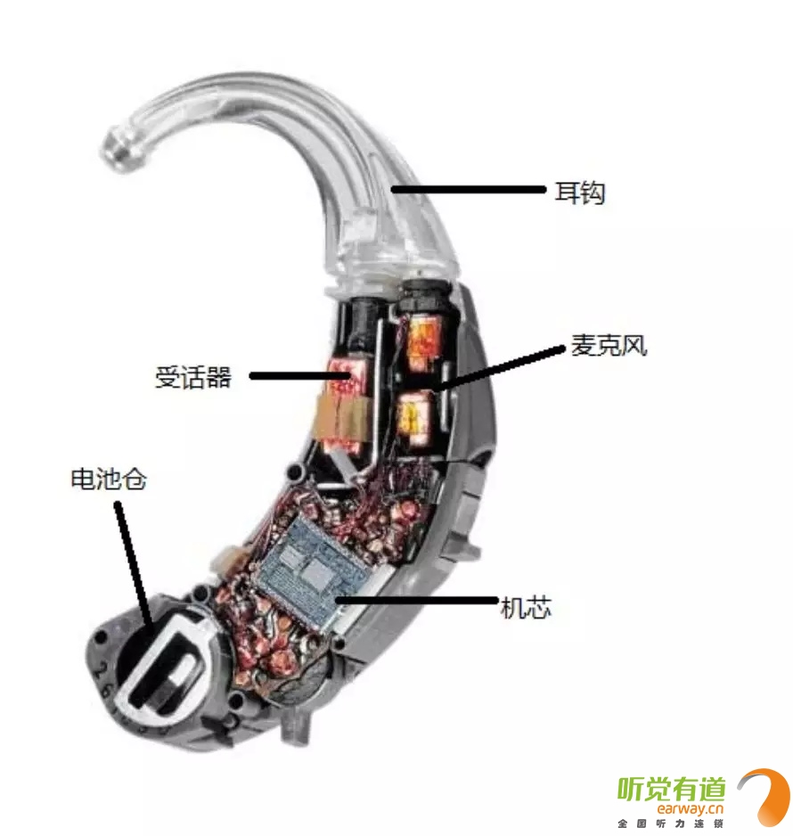 <span style="font-size:16px;"> 在助聽器發展過程中,出現過很多種助聽器,比如:盒式、眼鏡式、耳背式、耳甲腔式、耳道式、深耳道式等定制式助聽器。如今盒式助聽器、眼鏡式助聽器等幾乎已退出歷史舞臺,現在常見的助聽器有耳背式助聽器、定制式助聽器和RIE受話器外置式助聽器。</span></p><p style="text-align: center;"><span style="font-size:16px;"><img src="/upfiles/201808160127045435.jpg" width="640" alt="" /><br /></span></p><p><span style="font-size:16px;"> 接下來,我們將以耳背式助聽器為例,向您介紹助聽器的外部配件及內部構造!</span></p><p><span style="font-size:16px;"> 1、機身內部構造</span></p><p style="text-align: center;"><span style="font-size:16px;"><img src="/upfiles/201808160127276133.jpg" width="640" alt="" /><br /></span></p><p><span style="font-size:16px;"> 麥克風:獲取聲音并將聲音信號轉化為電信號。</span></p><p><span style="font-size:16px;"> 機芯:將電信號進行放大、處理,機芯包含放大器、音量調控電位器、微調電位器等。</span></p><p><span style="font-size:16px;"> 受話器:將電信號轉化為聲音信號,通過導聲管和耳模傳送給耳朵。耳背式助聽器和定制式助聽器的受話器都在機身內;RIE受話器外置式助聽器的受話器放置在耳道中。</span></p><p><span style="font-size:16px;"> 電池倉:用于安放電池來供電,使助聽器正常工作。</span></p><p><span style="font-size:16px;"> 2、電池</span></p><p><span style="font-size:16px;"> 電池放置于電池倉內,給予助聽器能量。市面上常見的助聽器電池分為4類:</span></p><p><span style="font-size:16px;"> A675:一般用于超大功率耳背式助聽器。</span></p><p><span style="font-size:16px;"> A13:一般用于標準耳背式或耳甲腔式助聽器。</span></p><p><span style="font-size:16px;"> A312:一般用于耳道式助聽器。</span></p><p><span style="font-size:16px;"> A10:一般用于深耳道式助聽器。</span></p><p><span style="font-size:16px;"> 電池大小:A675>A13>A312>A10,電池越大,儲存能量越多。</span></p><p><span style="font-size:16px;"></span></p><p> 更多詳情請登錄m.zhengzhoufuke.com。</p>" />