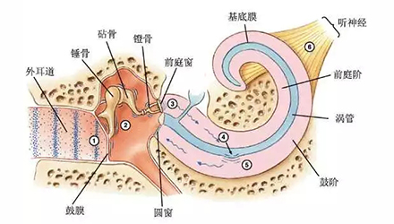 <span style="font-size:16px;"> 人體各器官功能取決于其生理結構,高頻陡降性聽力損失最為常見主要與耳部各個解剖部位有關。</span></p><p><span style="font-size:16px;"> 1、外耳的漏斗狀結構和彎曲“S”型耳道,此結構使得外界的聲學物理發生了變化。</span></p><p style="text-align: center;"><span style="font-size:16px;"><img src="/upfiles/201809030156391756.jpg" alt="" /><br /></span></p><p><span style="font-size:16px;"> 如上圖所示,人類耳廓及耳道對不同頻率段的聲音增益變化可以看出:在頻率2kHz-4kHz范圍耳道對聲音增益最大。研究表明噪聲引起的聽力損失常常位于噪聲頻率之上的一倍頻率程處,工業噪聲位于低中頻范圍內相對恒定,外耳道自然共振峰為2kHz-4kHz,故最容易導致4kHz-6kHz頻率范圍內聽力損失。這也就是為什么噪聲性耳聾起初聽力損失常常從4KHz左右開始,逐漸損害影響至更好頻率。</span></p><p><span style="font-size:16px;"> 2、耳蝸螺旋狀結構</span></p><center><span style="font-size:16px;"><img alt="" src="/upfiles/201809030156464845.jpg" width="440" height="250" /></span></center><p></p><p><span style="font-size:16px;"> 聲音從外耳道經聽骨鏈傳至內耳前庭窗,懸浮在耳蝸內的基底膜剪切運動引起其上的毛細胞電位變化,傳至大腦皮層感受聲音。</span></p><p><span style="font-size:16px;"> 耳蝸結構類似蝸牛呈螺旋結構,約2.5圈-2.75圈。聲波在基底膜上的傳播方式,是按物理學中的行波原理進行的,亦即行波學說(travellingwavetheory)。基底膜的最大振幅部位與聲波的頻率有關,亦即每一種頻率的聲波在基底膜上不同位置有一相應的最大振幅部位:高頻聲引起的最大振幅部位在蝸底靠近前庭窗處,低頻最大振幅靠近蝸頂,中頻在中間部分發生共振。由此可知,聲音從高頻到低頻的傳播途徑均需底周基底膜的振動,即高頻段的基底膜相對容易疲勞。同時耳蝸底周基底膜毛細胞含有比頂端毛細胞更低的抗氧化酶,故氨基糖苷類抗生素(慶大霉素、卡那霉素、鏈霉素等)耳毒性藥物出現的聽力損失都為陡降型聽力曲線。</span></p><p><span style="font-size:16px;"> 3、聽神經音頻分布</span></p><center><span style="font-size:16px;"><img alt="" src="/upfiles/201809030156516291.jpg" width="440" height="250" /></span></center><p></p><p><span style="font-size:16px;"> 聽神經分布與耳蝸基底膜螺旋結構一脈相承,感受低頻的神經位于中心,感受高頻的聽神經位于外周。外傷、缺血缺氧、皰疹病毒等理化環境的變化首先影響到高頻。</span></p><p><span style="font-size:16px;"> 更多詳情請登錄m.zhengzhoufuke.com。</span></p>" />