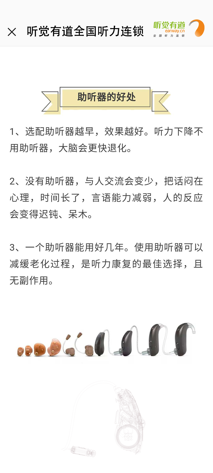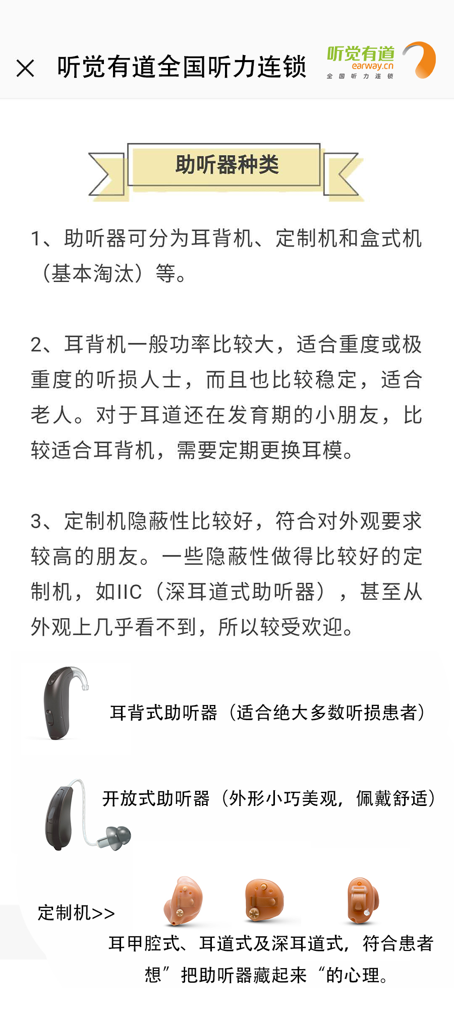 什么是助聽(tīng)器?長(zhǎng)什么樣子?有什么作用?如何使用?這里一一告訴您!</p><p> 助聽(tīng)器是聽(tīng)力障礙者使用的輔具,用來(lái)補(bǔ)足聽(tīng)力損傷所造成的缺陷。廣義上講凡能有效地把聲音傳入耳朵的各種裝置都可以看作為助聽(tīng)器,狹義上講助聽(tīng)器是一個(gè)電聲放大器,通過(guò)它將聲音放大,使聽(tīng)障者聽(tīng)到了原來(lái)聽(tīng)不清楚、聽(tīng)不到的聲音。</p><p> 第一:助聽(tīng)器的種類</p><p style="text-align: center;"><img src="/upfiles/201901180318143583.jpg" width="640" alt="" /><br /></p><p> 第二:助聽(tīng)器的好處</p><p style="text-align: center;"><img src="/upfiles/201901180318334139.png" width="640" alt="" /><br /></p><p> 第三:如何適應(yīng)助聽(tīng)器</p><p style="text-align: center;"><img src="/upfiles/201901180318506440.jpg" width="640" alt="" /><br /></p><p> 第四:選配助聽(tīng)器流程</p><p style="text-align: center;"><img src="/upfiles/201901180319039646.jpg" width="640" alt="" /><br /></p><p style="text-align: center;"><br /></p><p> 更多詳情請(qǐng)登錄m.zhengzhoufuke.com</p>" />