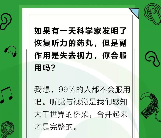 2019年3月29日聽覺有道推出一個全新的欄目內容<br /> 一本正經地奇思妙想<br /></span><p><span style="font-size:16px;"> 內容全靠一張圖:</span></p><p style="text-align: center;"><span style="font-size:16px;"><img src="/upfiles/201903290834583126.jpg" alt="" /><br /></span></p><span style="font-size:16px;"> 言語雖然不多僅僅三兩句<br /> 大家隨便看看就行了<br /> 可我們一定得往心里去啊<br /> 嚴肅點:愛耳君估計,99%的人心里都在想,誰會那么傻會做“拆東墻補西墻”的事情呢。<br /> 在現實中,很多恢復聽力藥物的研究就尚處于這個階段,我們在新聞上看到科學家已經可以讓小老鼠通過注射藥物等方式恢復聽力,然而我們沒有看到的是,這類方式目前還不能控制其極大的副作用,這種副作用可不僅僅是失明那么簡單,有可能還會丟掉性命。<a href="http://m.zhengzhoufuke.com/listDetail.aspx?id=102818" target="_blank"><strong><span style="color:#3333ff;">五個不容易被察覺的耳部疾病</span></strong></a><br /></span><p><span style="font-size:16px;"> 誠然,科研的每一分進步都難得可貴,未來會是怎樣的,愛耳君不知道。愛耳君希望有朝一日科學家能真正發明出一款“沒有副作用”的藥丸,讓全天下聽障人士都能恢復聽力。但我們也需正視現實把握當下,早發現、早干預、早治療。</span></p><span style="font-size:16px;"> 相關推薦閱讀:<a href="http://m.zhengzhoufuke.com/listDetail.aspx?id=102841" target="_blank"><strong><span style="color:#3333ff;">如何正確應對聽力損失?聽力保健的8大誤區</span></strong></a><br /><br /><br /> 聽覺有道助聽器價格:http://m.zhengzhoufuke.com/products.html<br /><br /> 發布于2019年3月29日 星期五<br /><br /> 上午8:36分</span>" />