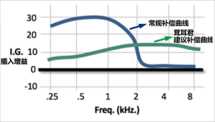 本文根據多年的臨床聽力學經驗,以及國內外的研究結果,分享復雜案例中上升型聽力損失的調試技巧。</p><p> 什么是上升型聽力損失?</p><p> 上升型聽力損失,顧名思義,指的是聽力損失從低頻到高頻逐漸降低,聽力圖上呈現上升“爬坡”的曲線形狀。</p><p> </p><center><img alt="" src="/upfiles/201904220143022080.png" width="440" height="250" /></center><p></p><p> 在本文中特指那些低頻為中度聽力損失,中高頻聽力正常或接近正常的,其中不包含傳導性聽力損失和混合型聽力損失,單指感音神經性聽力損失。</p><p> 這類聽力損失,為什么按照聽力圖顯示的損失,多補償低頻反而沒用呢?到底應該怎么調呢?</p><p> 先看一個有趣的循證測試</p><p> 在講述如何處理上升型聽力損失之前,我們先來看一個有趣的實驗。</p><p> 這項研究共有6名受試者進行了測試,其中5名受試者在高頻時聽力正常或接近正常,而低頻時聽力損失為中等程度,1名受試者為V型聽力圖。也就是說絕大部分人符合本文所講的上升型聽力損失。</p><p> 首先對6名受試者進行低通、高通、寬頻、K-Bass放大。也就是說分別給予如下圖的增益:</p><p> </p><center><img alt="" src="/upfiles/201904220143074763.png" width="440" height="250" /></center><p></p><p> 四種放大方案的最大區別就在于低頻和高頻增益各有不同。</p><p> 在低通放大中,低頻有一定的增益,而高頻則有一些插入缺失(負增益);在高通放大中,低頻增益為零,高頻增益最多;在寬頻放大中,低、高頻都有增益,其中低頻有較大增益高頻,高頻有相對較少的增益;在K-Bass放大中,低頻增益明顯,高頻增益為零,剛好彌補插入缺失。</p><p> 然后分別在無增益以及四類放大情況下進行言語清晰度的評估,結果如下圖所示。</p><p> </p><center><img alt="" src="/upfiles/201904220143125111.png" width="300" height="340" /></center><p></p><p> 我們發現沒有補償(UA),寬頻(BB),高通(HP),K-Bass(KB)的平均言語清晰度都大于低通(LP)的平均言語清晰度。</p><p> 此外,分別測試每個受試者在低通(LP)和其他放大方案下的高頻輔音辨別率得分,結果顯示,其他放大方案都高于低通(LP)的輔音辨別率得分,如下圖所示。</p><p> </p><center><img alt="" src="/upfiles/201904220143177827.png" width="300" height="335" /></center><p></p><p> 是不是疑惑?</p><p> 看到上述實驗,相信很多驗配師肯定會很疑惑:為什么只給低頻補償的效果是最差的呢?對于上升型的聽力損失難道不是應該好好補償低頻聽力損失嗎?</p><p> 解疑之前,不妨再看個“假如”:</p><p> 假如你在看電視,出現一些你非常感興趣的信息,你是不是會提高音量去仔細傾聽呢?</p><p> </p><center><img alt="" src="/upfiles/20190422014323161.png" width="440" height="250" /></center><p></p><p> 答案是肯定的,遇到我們感興趣的信息,我們常常會“豎起耳朵”仔細聆聽。</p><p> 我們都知道言語信息通常分布在中高頻率,所以要想聽到我們感興趣的言語信息,我們可以適當調高電視機音量,即便我們的聽力是正常的。</p><p> 回到助聽器驗配,可想而知,對于配戴助聽器的弱聽人士來說,考慮到高頻的插入缺失,也的的確確需要給予其一定的聽力補償。</p><p> 但是有些驗配師可能會想,上升型聽力損失的高頻接近正常,高頻增益過大會不會帶來不好的影響呢?</p><p> 其實不然,只要在弱聽人士的聽覺動態范圍內增加高頻增益,就不會帶來不適;這就相當于聽力正常者平常看電視時增加音量,能讓我們更好地聽到自己想要聽到的東西。</p><p> 簡單而高效的調試技巧</p><p> 初次驗配時:</p><p> 在處理上升型聽力損失時,我們通常首先會看到如下圖中的藍色曲線,這似乎也是最符合常理的。</p><p> </p><center><img alt="" src="/upfiles/201904220143288699.png" width="440" height="250" /></center><p></p><p> 但是,我們前面介紹了低通、高通、寬頻、K-Bass放大,結果表明,低通放大給足低頻,高頻不補償的效果最差。</p><p> 所以,基于循證驗配,在調試上升型聽力損失時,建議:在高頻給予至少10dB-15dB的插入增益,確保弱聽人士在高頻能夠聽到聲音,并適當減少低頻增益,如下圖中的綠色補償曲線。</p><p> </p><center><img alt="" src="/upfiles/20190422014334476.png" width="440" height="250" /></center><p></p><p> 不必糾結高頻聽力正常會不會補償不妥,目前的多通道非線性助聽器已經可以對高強度輸入進行防范管控,所以不用擔心弱聽人士會因高頻的補償而感到不適。</p><p> 相反,你甚至會驚訝,弱聽人士突然之間聽得更加清楚了。</p><p> 精細微調時:</p><p> 另外,在接下來的微調時,每個弱聽人士的聆聽需求可能都不一樣。 有些可能想要更多的低頻能量,有些可能喜歡寬頻補償,有些可能一點低頻補償不需要,但是,幾乎沒有弱聽人士想要降低高頻增益。</p><p> 很多時候,弱聽人士都希望把高頻再多補償點,以提高言語清晰度。</p><p> 所以,在此建議可以逐步減少低頻增益(部分可適當增加低頻),增加高頻增益,慢慢調試,直到弱聽人士覺得合適,如下圖綠色曲線的紅箭頭所示。</p><p> </p><center><img alt="" src="/upfiles/201904220143397445.png" width="440" height="250" /></center><p></p><p> 在這一環節中,微調的最終目的就是達到更高的言語清晰度。</p><p> 要用高級信號處理技術嗎?</p><p> 除了上述的增益調節,對于上升性聽力損失來說,高級信號處理技術的使用是不是重要呢?答案是,當然重要。</p><p> 通常來說,任何改善信噪比的信號處理技術,例如指向性系統、降噪系統,都能比較好地改善噪音環境下的聆