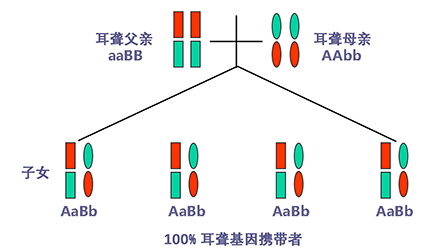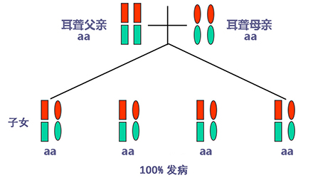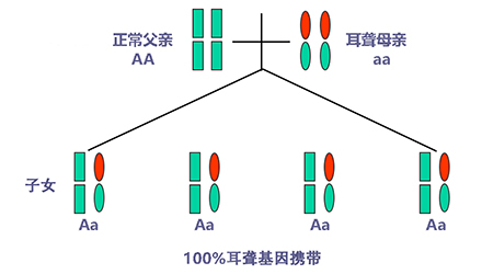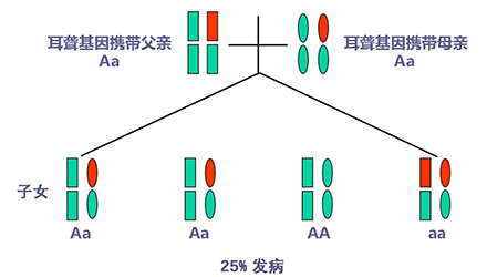 聽力正常有時只是“表象”,如果骨子里“隱藏”著聽損致病基因,這代“躲”過了聽力損失,可是下一代、下下一代呢?</p><p> 生活中我們會發(fā)現(xiàn),有一些父母雙方都有正常的聽力,但生出的孩子卻患有遺傳性聽力損失,很多人都會感到詫異,甚至父母本身都無法相信自己竟然生出了弱聽的孩子。</p><p> 其實(shí),此類“怪異事情”的發(fā)生離不開基因的作用,這與遺傳性聽損中的常染色體隱性遺傳密切相關(guān)。</p><p> 今天就帶大家看看:常染色體隱性遺傳性聽損是怎么一回事?它有什么特點(diǎn)呢?基因又是如何“從中作祟”的呢?</p><p> 先來說說隱性遺傳為什么“隱藏”在骨子里</p><p> 俗話說,龍生龍,鳳生鳳,老鼠的兒子會打洞。這些表現(xiàn)都是基因所賦予的、與生俱來的,我們稱這種表現(xiàn)是顯性的。但有時,即便你骨子里帶著那份基因,可是沒有表現(xiàn)出來。</p><p> 例如上文說到的,父母雙方聽力正常,但其實(shí)他們?nèi)杂新爴p致病基因,這種表現(xiàn)就叫隱性。</p><p> </p><center><img alt="" src="/upfiles/201904260337585875.png" width="440" height="250" /></center><p></p><p> 接著說說常染色體隱性遺傳性聽損“隱藏”的聽力損失</p><p> 常染色體隱性遺傳性聽損是指與聽力損失表型相關(guān)的基因位于常染色體上,是最常見的遺傳性聽損,約占80%。 一般而言,這類聽力損失多指非綜合征型聽損,即聽力下降是其唯一臨床表現(xiàn),大多數(shù)患者癥狀早發(fā)且程度較重。</p><p> 這類聽力損失只有在來自父母的等位基因均攜帶致病突變時才出現(xiàn)聽力下降。</p><p> </p><center><img alt="" src="/upfiles/201904260338048765.png" width="440" height="250" /></center><p></p><p> 根據(jù)人類基因組命名委員會的規(guī)則,以DFNB來表示常染色體隱性遺傳性聽損。</p><p> 第一個致病基因座位表述為DFNB1,此后依據(jù)基因座發(fā)現(xiàn)及獲得命名的時間順序,依次命名為DFNB2,DFNB3……</p><p> 目前,常染色體隱性遺傳的基因座位一共有86個。其中DFNB1和DFNB18中各有兩個聽損致病基因,其他為各一個聽損致病基因。</p><p> 例如,GJB2基因是中國人最常見的聽損致病基因,在兒童非綜合征聽損中占40%,其基因座位為DFNB1。</p><p> </p><center><img alt="" src="/upfiles/201904260338091241.png" width="440" height="250" /></center><p></p><p> 聽損隱性遺傳表現(xiàn)各式各樣不是想“躲”就能“躲”</p><p> 涉及到不同聽損致病基因的共同作用,常染色體隱性遺傳方式有很多,下面就以最常見且最簡單的方式進(jìn)行舉例分析:</p><p> 1. 父母雙方聽力正常,都為聽損致病等位基因的攜帶者(Aa),則子女中有25%的概率患有聽力損失,50%的概率為聽損致病基因攜帶者。</p><p> </p><center><img alt="" src="/upfiles/201904260338147337.png" width="440" height="250" /></center><p></p><p> 2. 父母雙方都患有聽力損失,且聽損致病基因?yàn)榈任换?aa),則子女基因都為(aa),100%患有聽力損失,也就是代代相傳。</p><p> </p><center><img alt="" src="/upfiles/20190426033818859.png" width="440" height="250" /></center><p></p><p> 3. 父母一方為聽力正常者(AA),另一方患有聽力損失(aa),則子女基因都為(Aa),即聽力正常的聽損致病基因攜帶者。</p><p> </p><center><img alt="" src="/upfiles/201904260338249987.png" width="440" height="250" /></center><p></p><p> 4. 父母一方為聽力正常的聽損致病基因攜帶者(Aa),另一方患有聽力損失(aa),則子女基因50%的概率為聽力正常但攜帶聽損致病基因(Aa),50%的概率患有聽力損失(aa)。</p><p> </p><center><img alt="" src="/upfiles/201904260338297827.png" width="440" height="250" /></center><p></p><p> 5. 父母雙方都有聽力損失,但非等位基因,父親為(aaBB),母親為(AAbb),則子女基因都為AaBb,即100%的概率聽力正常。</p><p> </p><center><img alt="" src="/upfiles/201904260338427827.png" width="440" height="250" /></center><p></p><p> 常染色體隱性聽損遺傳的特征下一代“躲”得過嗎?根據(jù)如上分析,我們可以總結(jié)常染色體隱性遺傳性聽損具有以下特征:</p><p> 1. 聽損致病基因位于常染色體,因而聽損致病基因的遺傳與性別無關(guān),即男、女性的患病機(jī)會均等;</p><p> 2. 系譜中通常看不到連續(xù)傳遞現(xiàn)象,往往是散發(fā)病例,但同胞中可有多人患病;</p><p> 3. 患者的雙親一般不患病,但都是致病基因的攜帶者;</p><p> 4. 患者的同胞有1/4的風(fēng)險(xiǎn)患病,患者表型正常的同胞中有2/3的概率為攜帶者;</p><p> 5. 患者的后代一般不發(fā)病,但一定是聽損致病基因攜帶者;</p><p> 6. 近親婚配時,子女的發(fā)病風(fēng)險(xiǎn)顯著提高,因?yàn)楣餐淖嫦瓤赡軅鬟f給他們共同的突變基因。</p><p> </p><center><img alt="" src="/upfiles/201904260338494272.png" width="440" height="250" /></center><p></p><p> 可見,遺傳性聽損有多種多樣的表現(xiàn)形式,需要細(xì)分遺傳模式。 父母的不同表型和不同聽損致病基因決定了其后代各種各樣的表現(xiàn)形式。</p><p> 正常聽力的父母可能生出弱聽的孩子,哪怕是同有聽損的父母也有可能生出聽力正常的孩子。</p><p> 隱性基因表現(xiàn)各異怎么辦?唯有基因檢測明確</p><p> 所以,要想知道自己及其配偶是否攜帶聽損致病基因,是否會遺傳給后代,后代的遺傳概率有多大,如何規(guī)避部分致病基因?qū)е碌穆犃ο陆?.....唯有通過遺傳性聽障基因檢測。</p><p> 才能幫助我們更好了解各種可能的表現(xiàn)形式,進(jìn)而準(zhǔn)確分析遺傳模式,推斷后代可能患有聽損的概率,