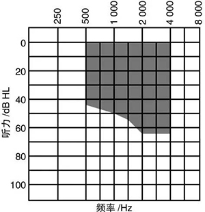 ①中至重度感音神經性聽損者,氣導閾值在圖1陰影范圍內;