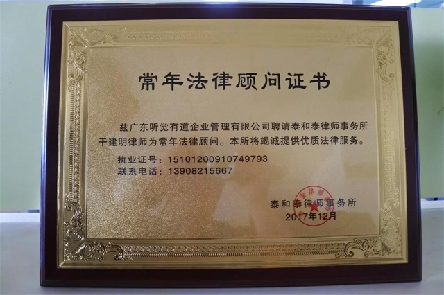 <span style="font-size:16px;"></span></p><p style="text-align: center;"><span style="font-size:16px;"><img src="/upfiles/201801230437528599.jpg" alt="" /><br /></span></p><p style="text-align: center;"><span style="font-size:16px;"><br /></span></p><p><span style="font-size:16px;"> 為從源頭上有效防范和化解經(jīng)營風(fēng)險(xiǎn),聽覺有道全國運(yùn)營管理中心聘請著名律師干建明先生及其團(tuán)隊(duì)擔(dān)任聽覺有道公司投融資法律事務(wù)常年法律顧問,聘請著名律師潘秋波先生及其團(tuán)隊(duì)擔(dān)任聽覺有道日常經(jīng)營法律事務(wù)常年法律顧問,聘請著名財(cái)稅專家周晨先生及其團(tuán)隊(duì)擔(dān)任常年財(cái)稅顧問,共同為正在快速擴(kuò)張的全國聽力連鎖業(yè)務(wù)保駕護(hù)航。</span></p><p><span style="font-size:16px;"> 據(jù)悉,根據(jù)助聽器行業(yè)以及聽覺有道日常經(jīng)營活動(dòng)的特點(diǎn),在法律顧問方面聽覺有道將獲得企業(yè)日常運(yùn)營法律風(fēng)險(xiǎn)防控、各類業(yè)務(wù)合同法律風(fēng)險(xiǎn)防控、企業(yè)知識(shí)產(chǎn)權(quán)風(fēng)險(xiǎn)防控、日常法律咨詢幫助等專業(yè)服務(wù)。</span></p><p><span style="font-size:16px;"><br /></span></p><p><center><img src="/upfiles/201801230437323749.jpg" alt="" /></center><center><br /></center></p><p><center><img src="/upfiles/201801230438078765.jpg" alt="" /></center><center><br /></center></p><p></p><p><span style="font-size:16px;"> 根據(jù)聽覺有道發(fā)展規(guī)劃,在財(cái)稅顧問方面,聽覺有道將獲得專業(yè)財(cái)務(wù)規(guī)劃與稅務(wù)籌劃、資本運(yùn)營策劃等專業(yè)咨詢服務(wù)。</span></p><p><span style="font-size:16px;"><br /></span></p><p><center><img src="/upfiles/201801230438149231.jpg" alt="" /></center><center><br /></center></p><p></p><p><span style="font-size:16px;"> 聽覺有道一直秉承合法經(jīng)營、公平競爭的原則,相信干建明先生及其團(tuán)隊(duì)、潘秋波先生及其團(tuán)隊(duì)、周晨先生及其團(tuán)隊(duì),將為這一原則的貫徹執(zhí)行,發(fā)揮不可估量的作用,有力地保障聽覺有道穩(wěn)健、快速的發(fā)展。</span></p><p><span style="font-size:16px;"></span></p>" />