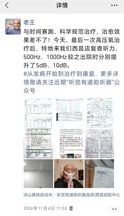 聽覺有道全國聽力連鎖聯合創始人王曉剛先生,期間或因工作過度操勞,于2024年10月16日的夜晚,耳道內突然響起了一聲“砰”的異響。次日,他的耳內又相繼出現了“噗噗”聲、“滋滋”聲的雜音,與人交談時,聽不清、甚至聽不到對方的話語變得愈發顯著。